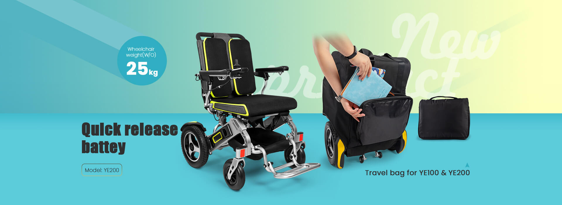 YATTLL-YE200: Travel Lightweight Folding Electric Wheelchair